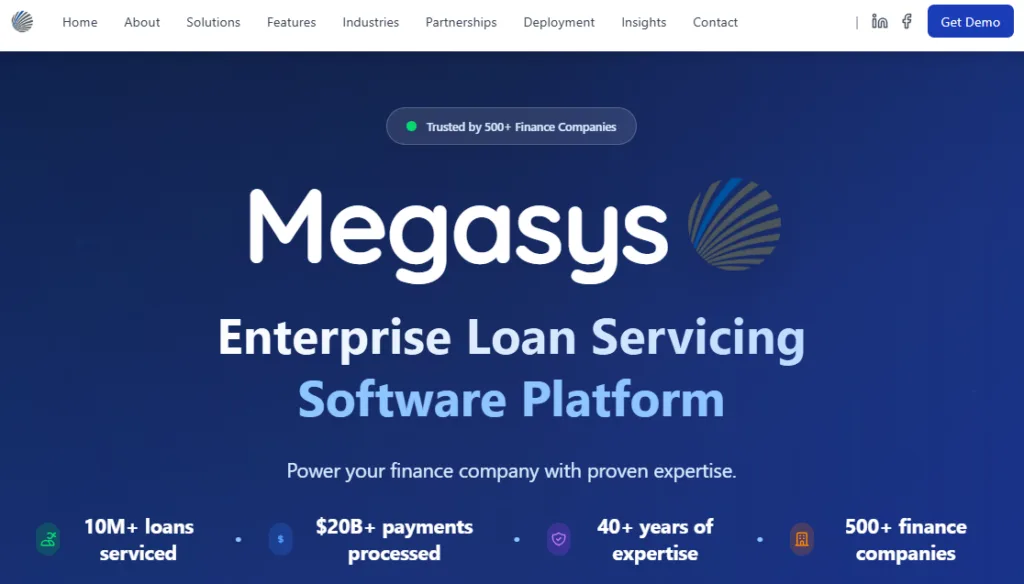 | Omega (Megasys) | Enterprise loan servicing covering origination, servicing, collections, and reporting across prime, near-prime, and subprime portfolios | Yes |